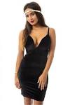 Arya Black Strap Detail Plunge Bodycon Dress. This luxe velvet black bodycon dress features a sultry v neck cut out with a sheer glitter lace.
